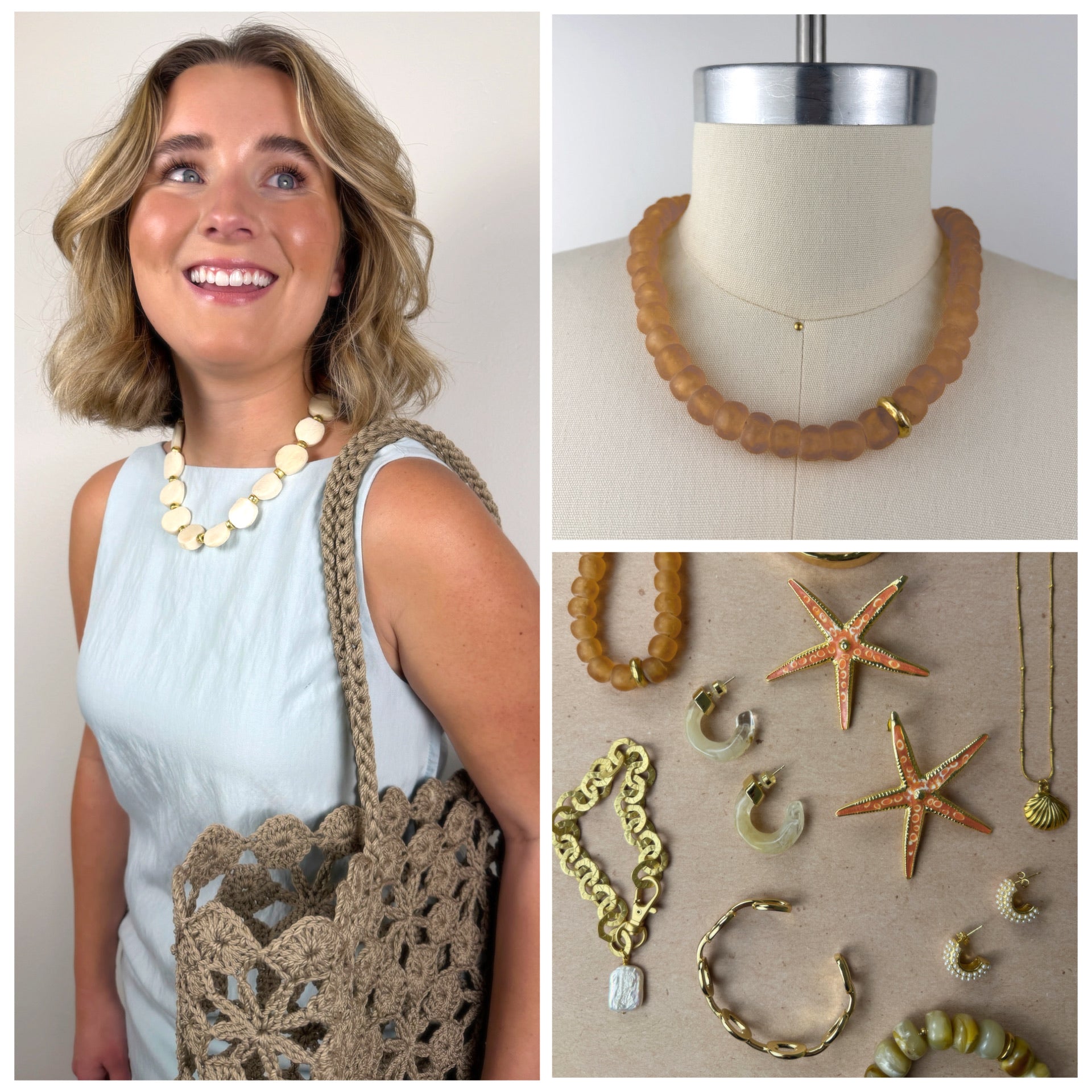 Effortlessly capturing the essence of sun, sand, and sea, our coastal-inspired accessories bring a breezy, beachy elegance to every look.