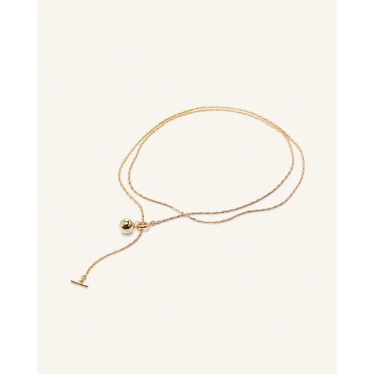 An intricate round chain with unique light-catching qualities and limitless ways to wear. This piece can be worn fully extended, double wrapped, as a lariat necklace or bracelet. Volume is expressed in the fullness of this JB ball charm. Toggle closure, finished in high-polish gold.