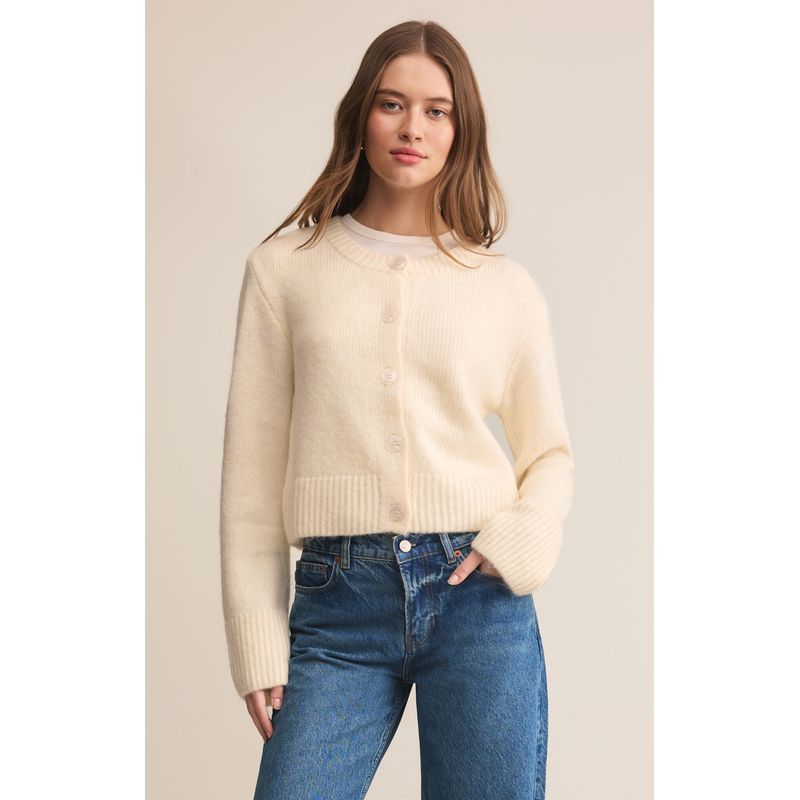 Brushed mohair yarns give this cropped button-front cardigan its soft, cloudlike feel. A modern take on a classic, it’s perfect for layering or wearing as a top with denim.