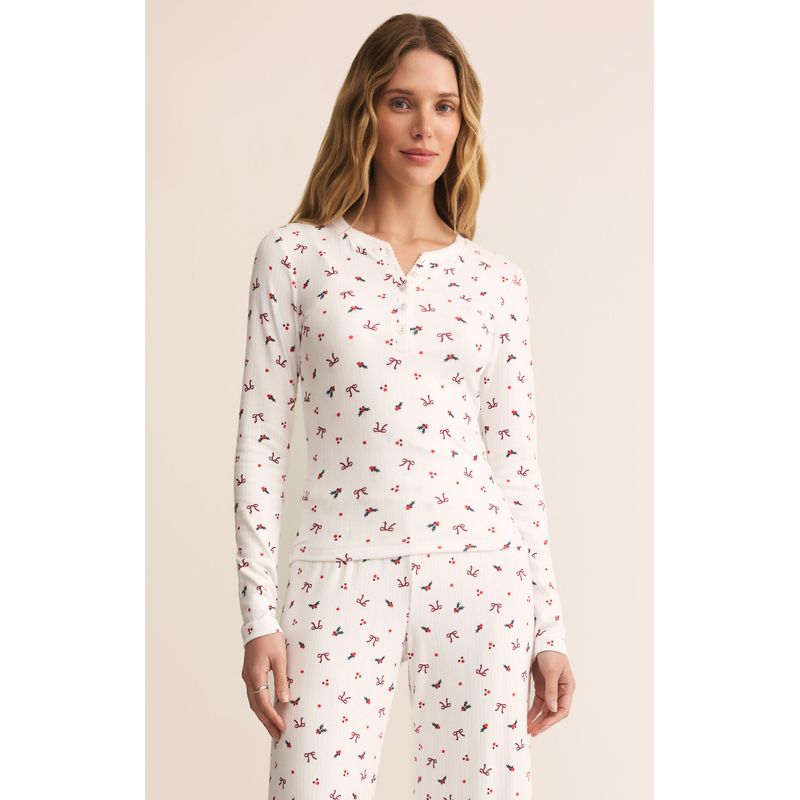 Delicate pointelle knit meets a classic henley design for a touch of texture and softness. Its fitted silhouette makes it an easy base layer or a cozy lounge favorite on its own.
