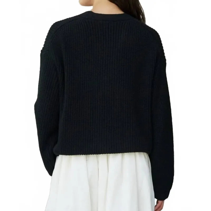 This cardigan will be a sweater-rotation favorite.Elevate your wardrobe with this cardigan, a standout piece in a solid black hue. Its long sleeves and classic V-neck create a timeless, preppy look, crafted for women who appreciate subtle elegance. Made with a convenient button closure, this cardigan is perfect for layering. Easy to care for, simply hand wash and tumble dry to maintain its refined appeal.